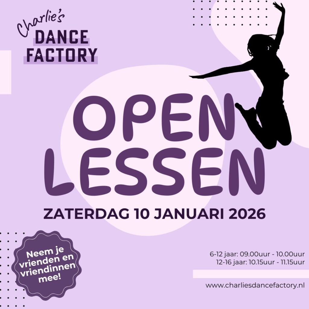 Wil jij weten hoe het is om in Charlie’s Dance Factory te dansen? Kom dan op zaterdag 10 januari naar de Open Lessen! We starten met een nieuwe choreografie en maken er met elkaar een gezellige dansles van. Check de verschillende dansgroepen om te zien welke het beste bij jou past en meld je aan!